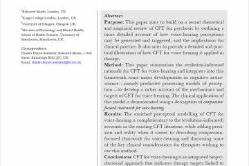 It was wonderful to co-author with chairwork expert Tobyn on this new invited article: “Compassion-focused chairwork for voice-hearing relationships, body triggers and motivational states” This […]