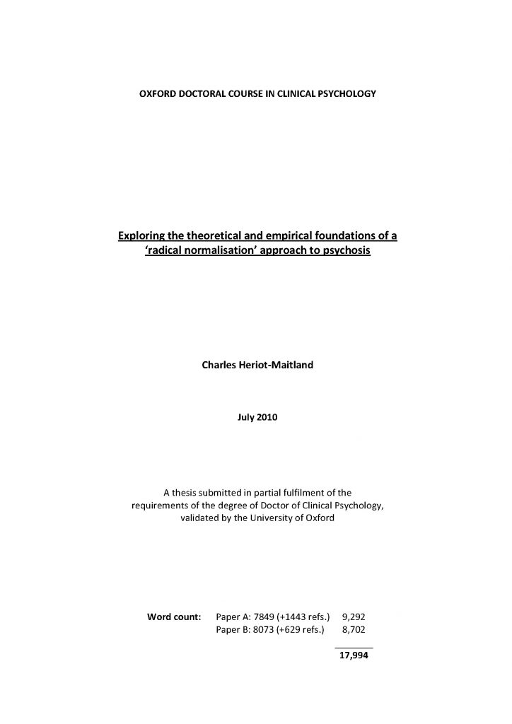 ‘Exploring the foundations of a ‘radical normalisation’ approach to psychosis’