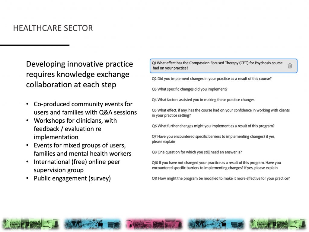 • NHS Lothian acute inpatient services – collaborator on group evaluation research study (adult psychosis)