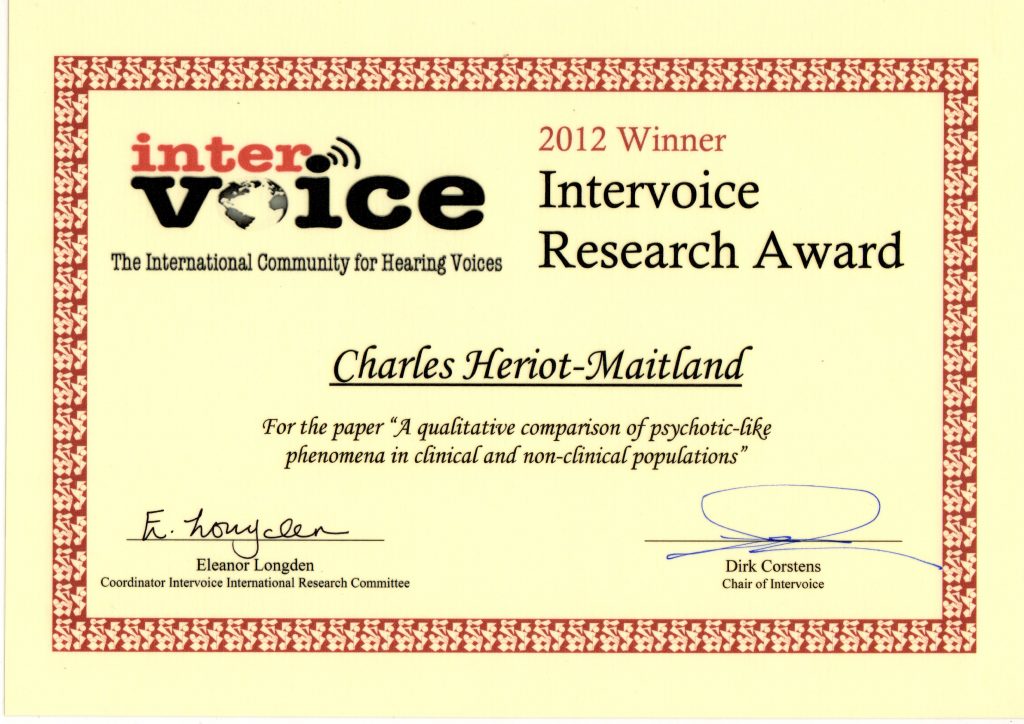 • 2014 – Compassion for Voices: A tale of courage and hope (£7,500)
