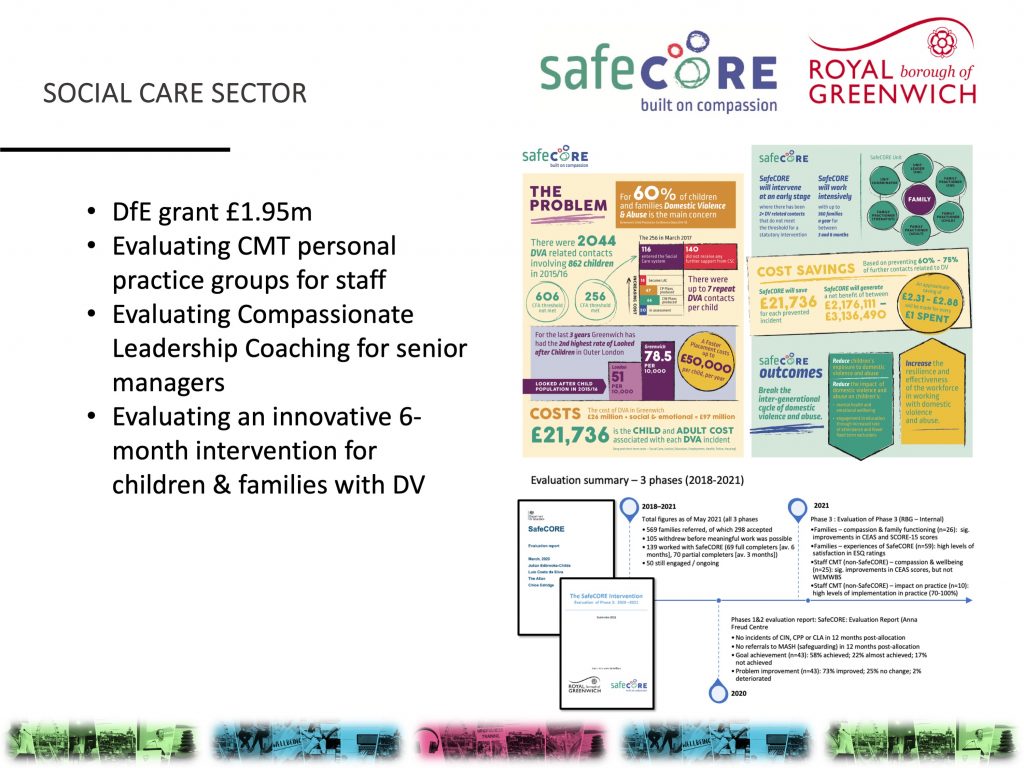 • Royal Borough of Greenwich – co-investigator on 3 intervention evaluation studies (children’s social care)