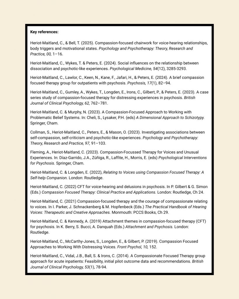 Today I had a wonderful opportunity to reflect on this work, on compassion, and on CFT for Psychosis in a recorded interview that will hopefully be used as part of their in-house staff trainings.